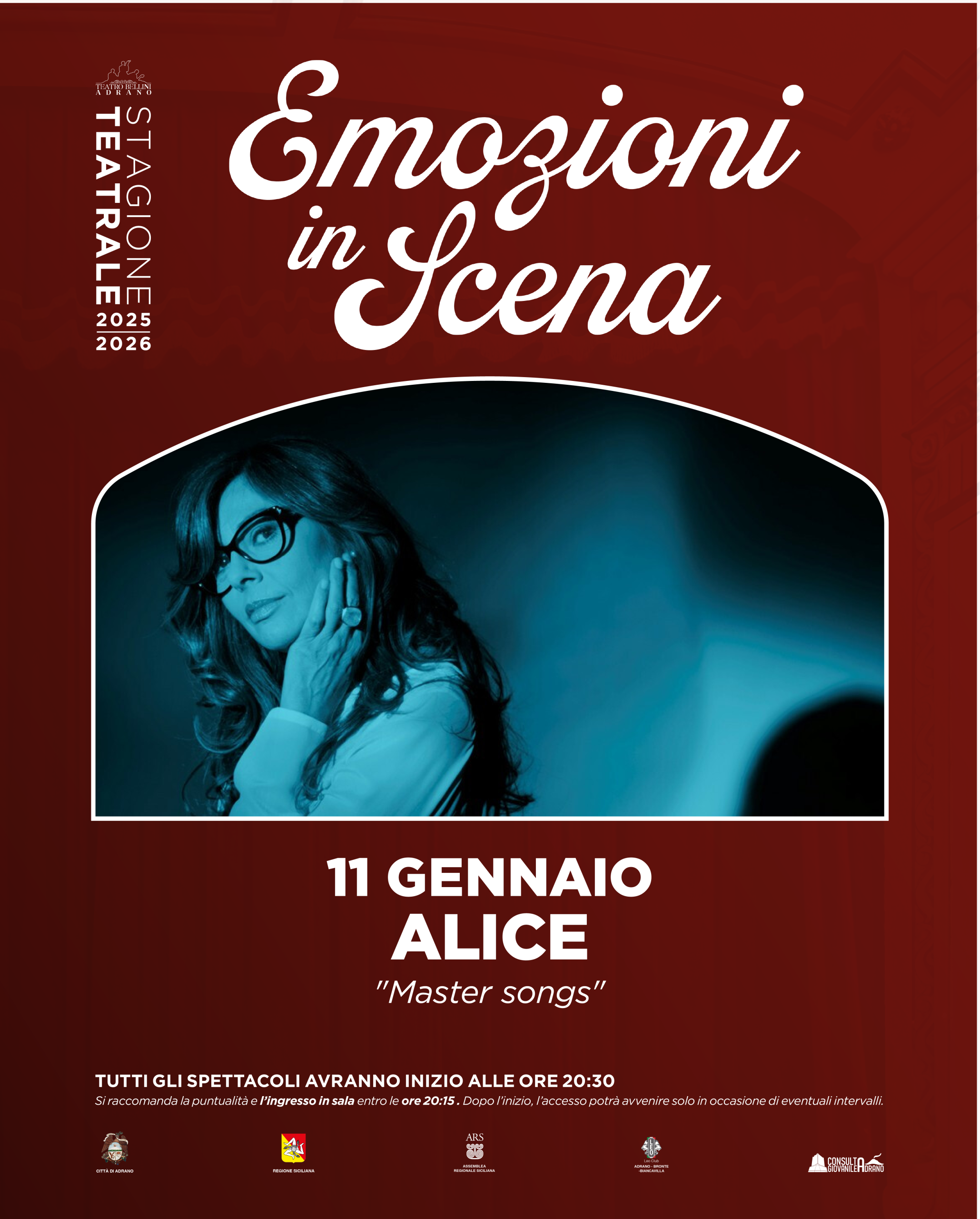 Il Teatro Vincenzo Bellini di Adrano accoglie Alice con “Master Songs”, uno spettacolo di grande intensità artistica che celebra la musica come linguaggio universale e senza confini.