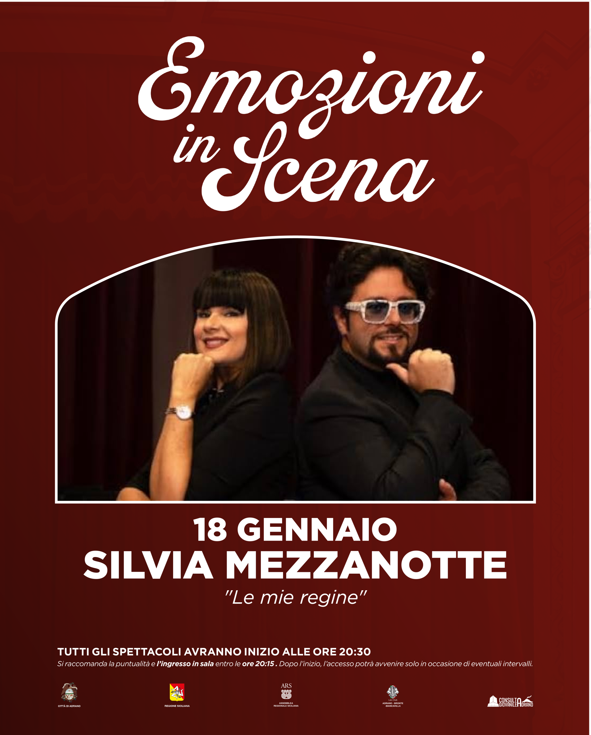 Il Teatro Vincenzo Bellini di Adrano ospita Silvia Mezzanotte con “Le mie regine”, uno spettacolo intenso e coinvolgente che celebra le grandi interpreti femminili della musica italiana e internazionale.