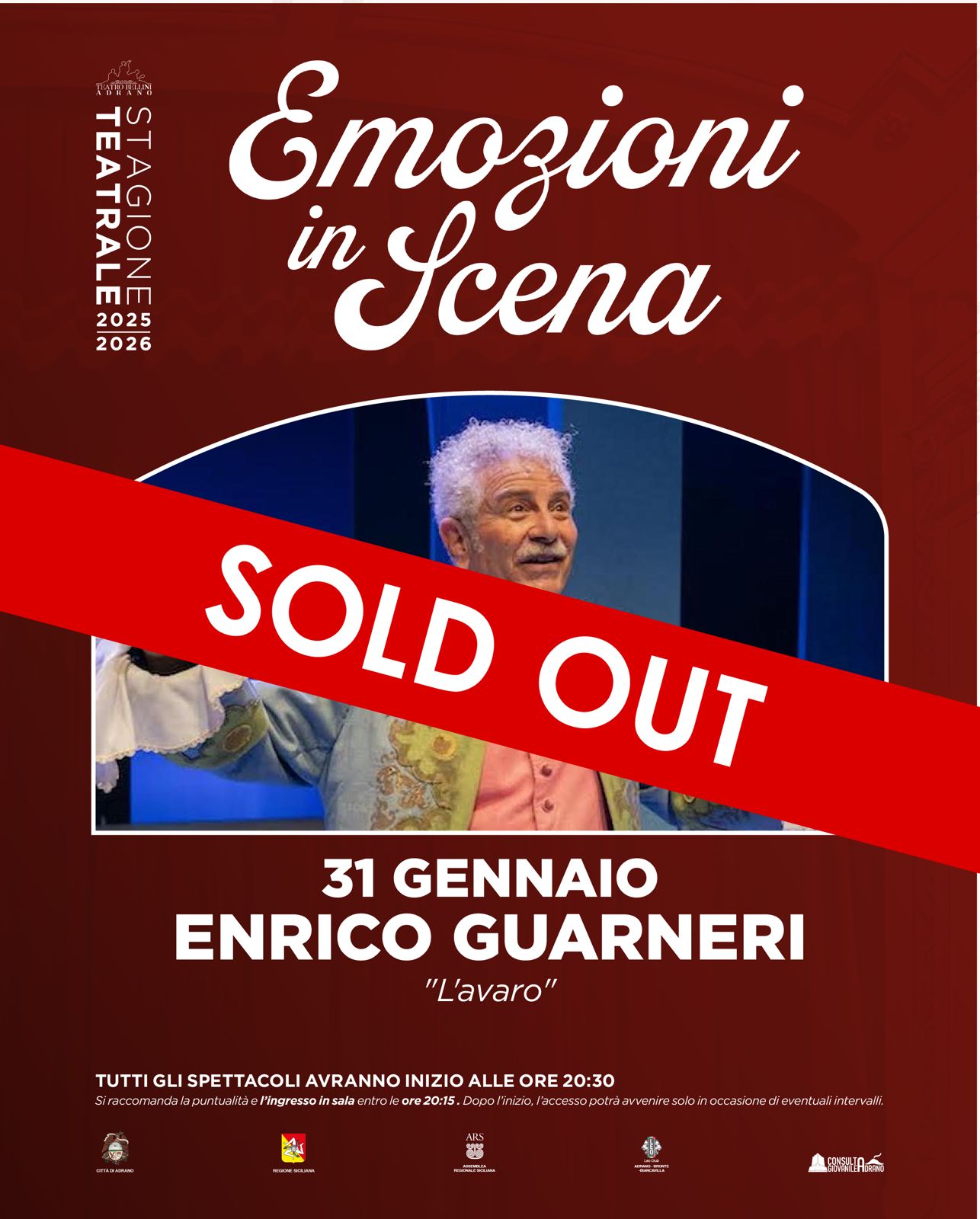 Un grande classico della commedia prende vita sul palco del Teatro Vincenzo Bellini di Adrano con uno dei suoi interpreti più amati: Enrico Guarneri, protagonista de “L’avaro”.