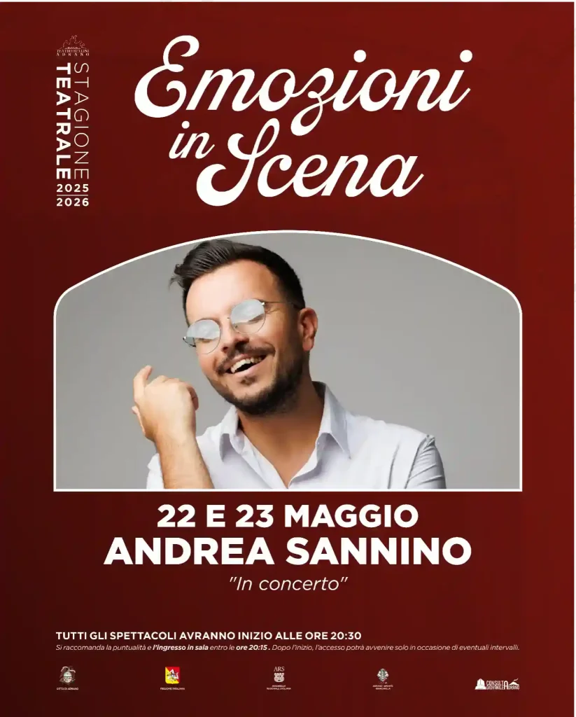 Il 22 e 23 maggio il palco del Teatro Vincenzo Bellini di Adrano accoglie Andrea Sannino per due appuntamenti imperdibili all’insegna della musica e dell’emozione autentica.