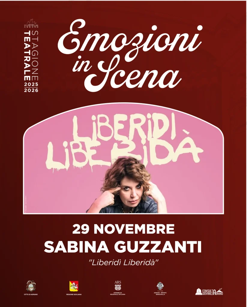 Il Teatro Vincenzo Bellini di Adrano ospita una delle voci più pungenti e brillanti del panorama teatrale e satirico italiano: Sabina Guzzanti con il suo spettacolo “Liberìdi Liberidà”, un viaggio ironico e lucido nel mondo della libertà di pensiero, della parola e dell’identità.