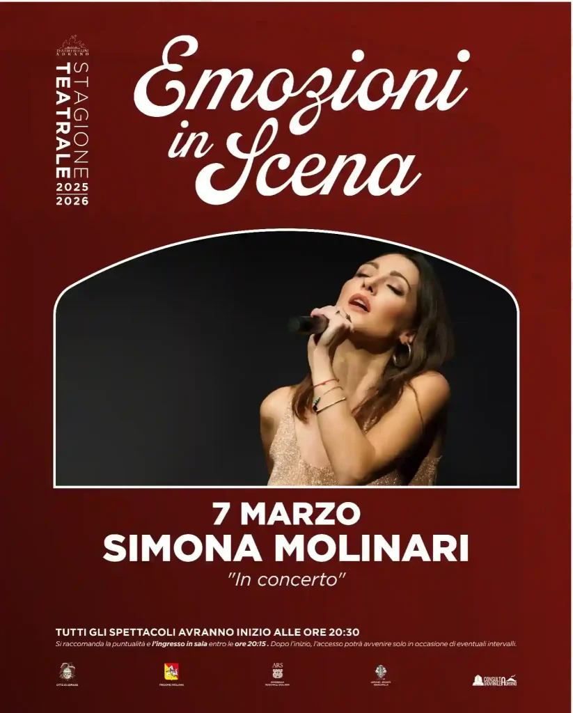 Simona Molinari arriva al Teatro Vincenzo Bellini di Adrano con un concerto che unisce classe, intensità e una voce inconfondibile.