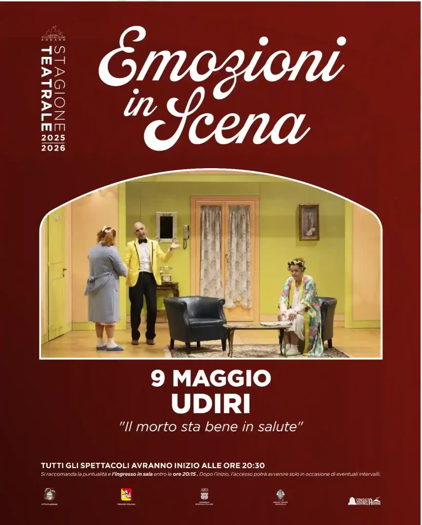 Il 9 maggio il Teatro Vincenzo Bellini di Adrano ospita la compagnia UDIRI con “Il morto sta bene in salute”, una commedia brillante che gioca con il paradosso, l’equivoco e l’umorismo più genuino della tradizione teatrale.